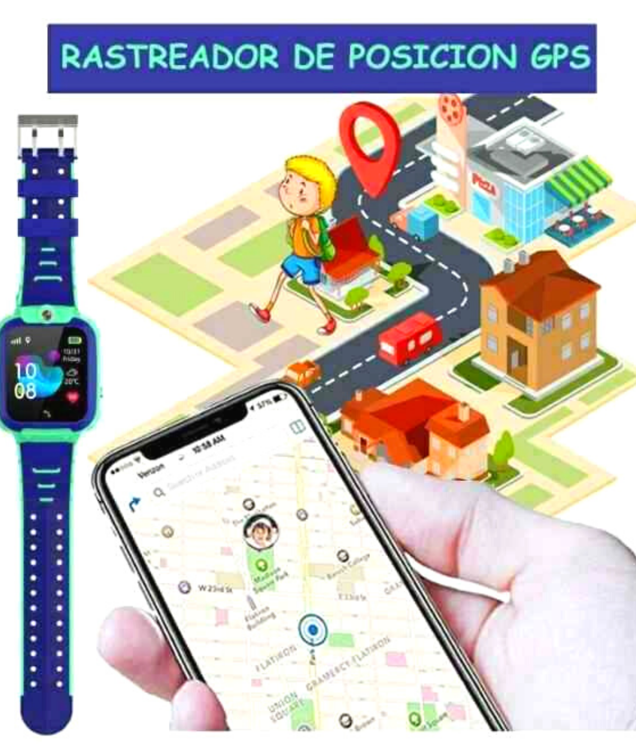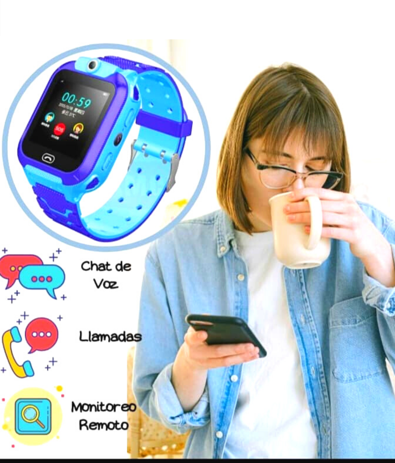 - Sistema GPS, los padres pueden personalizar para que cuando el niño o la persona quien lleva el reloj salga de la zona marcada, la aplicación mandara una notificación.
